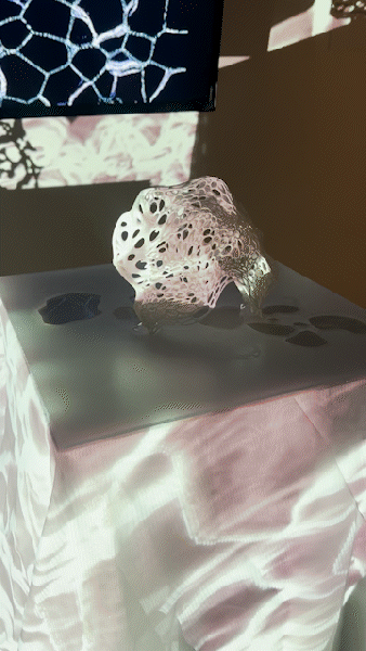 Pearlescent is a multimedia installation that is focused on creating an intimate experience that provides the audience with an insight on how data could be utilized as a tool in the distant dystopian or utopian future. The 3D printed sculptures are created using generative design with data gathered from various bacteria and fungi growth patterns. The installation creates an immersive experience that is meant to be an emotional response to the criticisms of the personal and security ramifications issues with mass data collection.